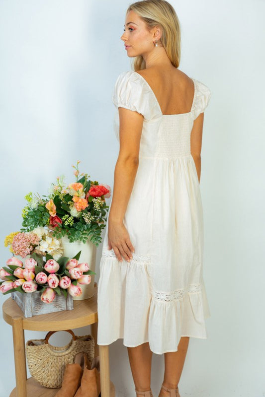 White Birch Flower Market Full Size Lace Trim Midi Dress