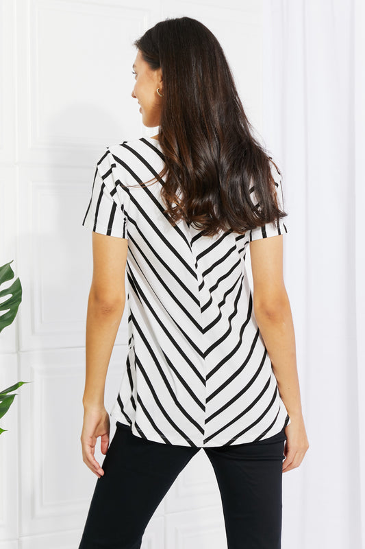 Yelete Casual Living Full Size Chevron Stripe V-Neck Tee